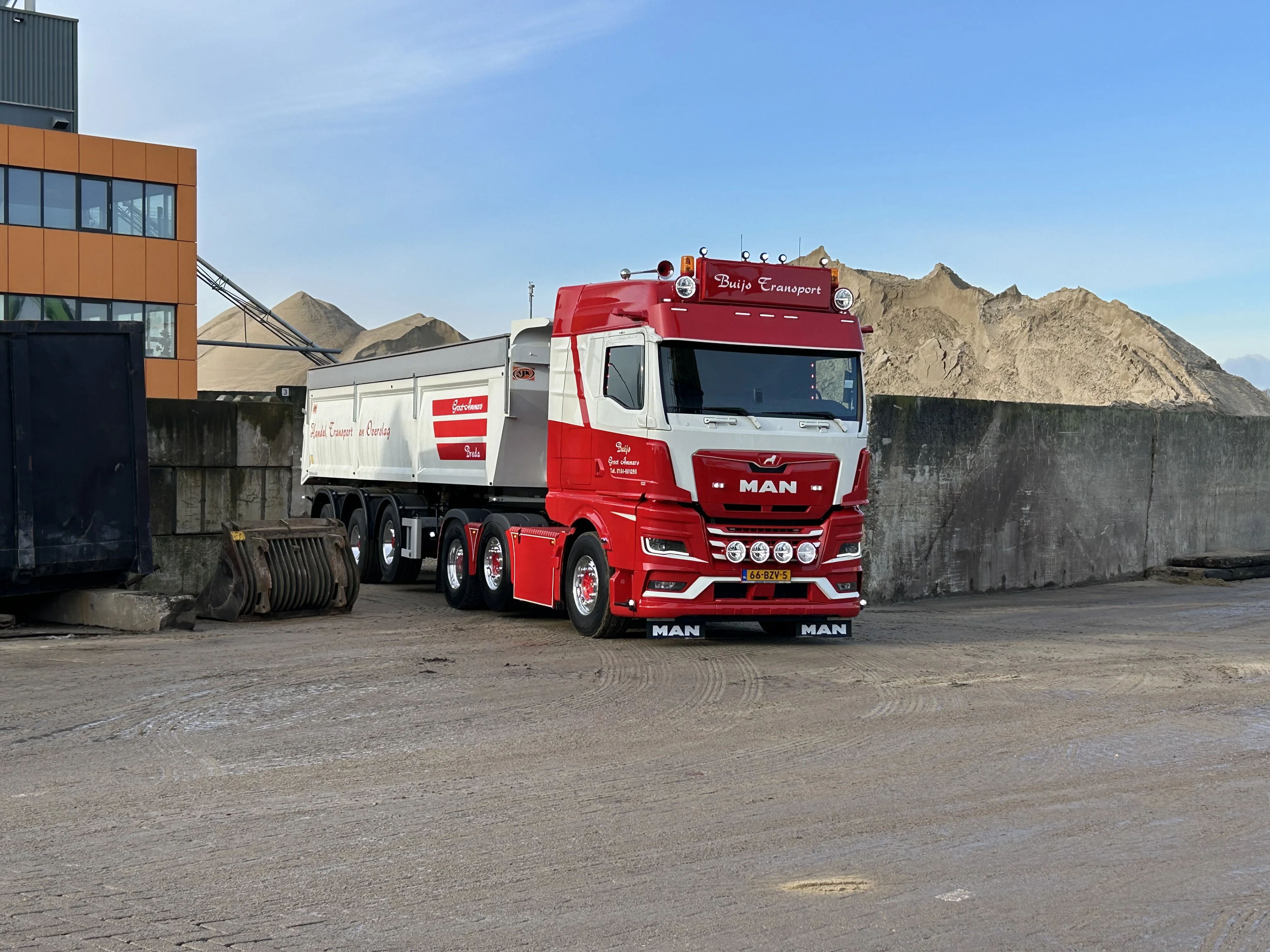 Buijs Groot-Ammers is leverancier in zand, grind en bouwmateriaal. Om op de meest uiteenlopende locaties te komen, heb je het juiste voertuig nodig. “We hebben een gestuurde trailer en een zware truck om zoveel mogelijk volume per keer te kunnen vervoeren,” vertelt Wim. Met al een aantal MAN voertuigen was de keuze voor een nieuwe logisch.